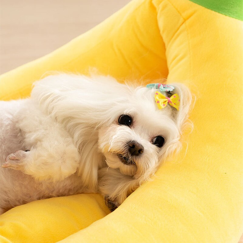 Cama con forma de plátano para perro, cojín para gato, casa suave, perrera, nuevo diseño, cesta de felpa, cálido para invierno