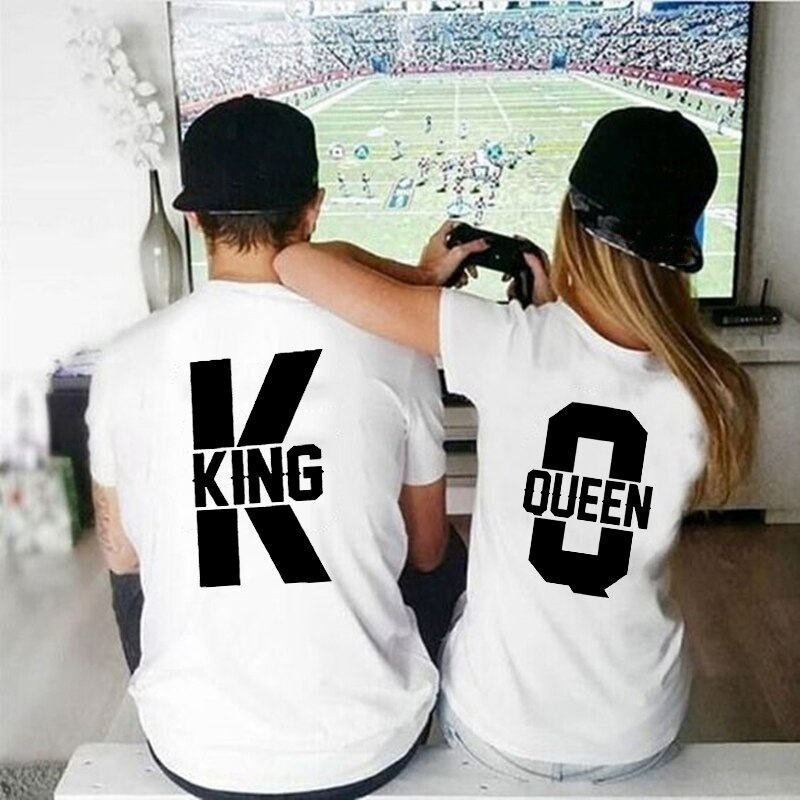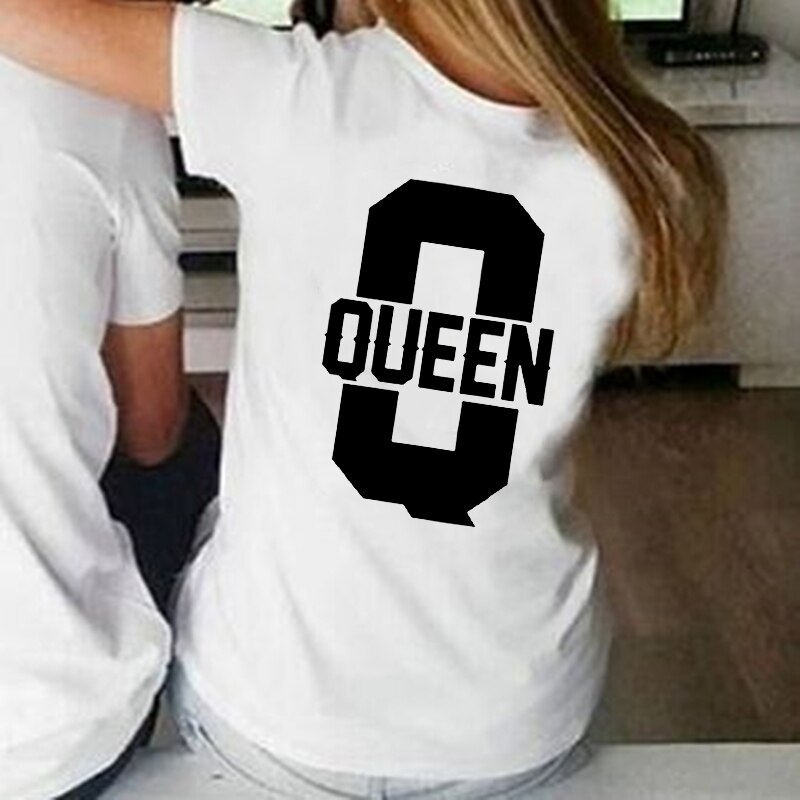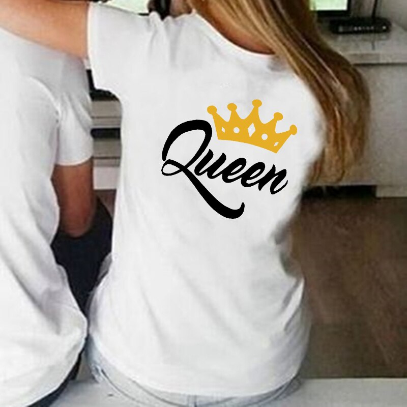 Camiseta con estampado de Queen King para hombres y mujeres, camisa divertida de verano para parejas, Tops a juego, atuendo de aspecto del Día de San Valentín